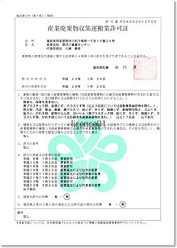 福岡県/産業廃棄物収集運搬業許可証[許可番号] 04000013700 |