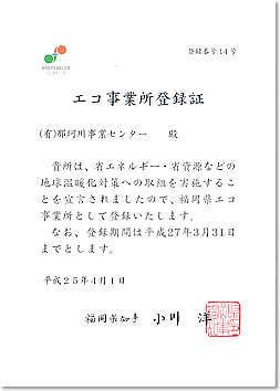 福岡県/エコ事業所登録証[登録番号] 14 |